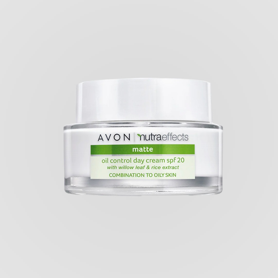 O Avon nutraeffects é um creme hidratante diário com efeito matificante, ideal para peles oleosas ou mistas. Sua fórmula combina extratos de folha de salgueiro e arroz para regular a oleosidade e minimizar o brilho, além de conter vitamina E, açafrão e manteiga de karité, que oferecem ação antioxidante, calmante e nutritiva. O produto também protege a pele contra os raios solares com FPS .