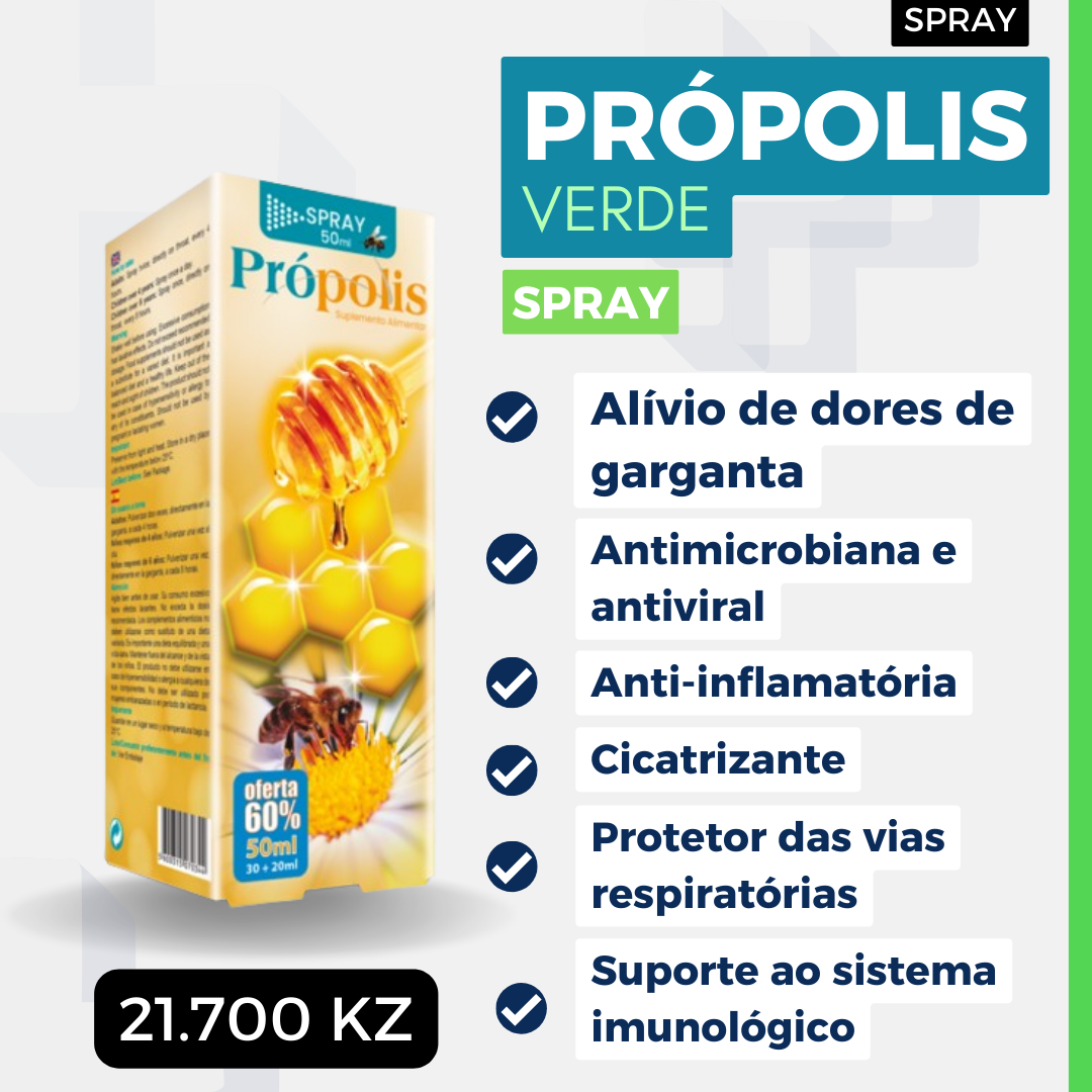 Outros ingredientes: Agente de volume: Água, Sorbitol, Extracto hidroalcoólico de Própolis (resina) 7,41%; Mel de Flores 7,41%; Extracto hidrofilico de Gengibre (Zingiber officinalis), raiz 4,63%; Extracto hidrofilico de Agrimonia (Agrimonia eupatoria), planta 4,63%; Extracto hidrofilico de Hortelã-Pimenta (Mentha piperita), planta 4,63%; Extracto hidrofilico de Salvia (Salvia officinalis), planta 4,63%; Extracto hidrofilico de Equinácea (Echinacea purpúrea), raiz 3,70%; Ácido L-ascórbico (Vitamina C) 0,44%; Conservante: Sorbato de Potássio; Regulador de Acidez; Ácido Cítrico; Conservante: Benzoato de Potássio; Aroma.
